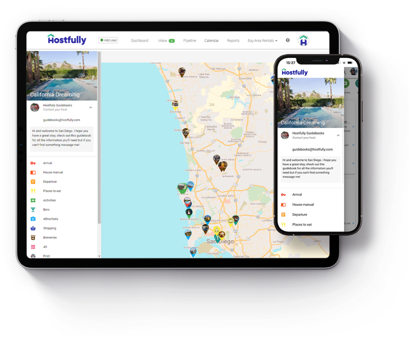 With Hostfully’s Digital Guidebooks, you’re able to communicate everything a guest needs to know from check-in to check-out about your property, and even provide local recommendations. They’re easy to build & manage, and require no technical expertise at all. When sharing, you can either print, download the PDF version, or provide a simple private link to your guest that is optimized to be opened on any device or browse. You can also upsell your extra services and create more revenue streams for your business.